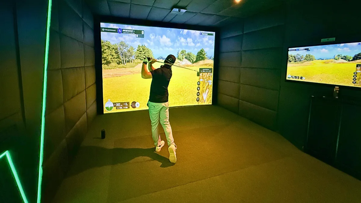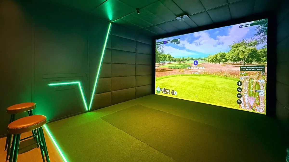 Each bay is powered by the latest TrackMan simulator technology and designed to feel more like a private golf lounge than a driving range bay.